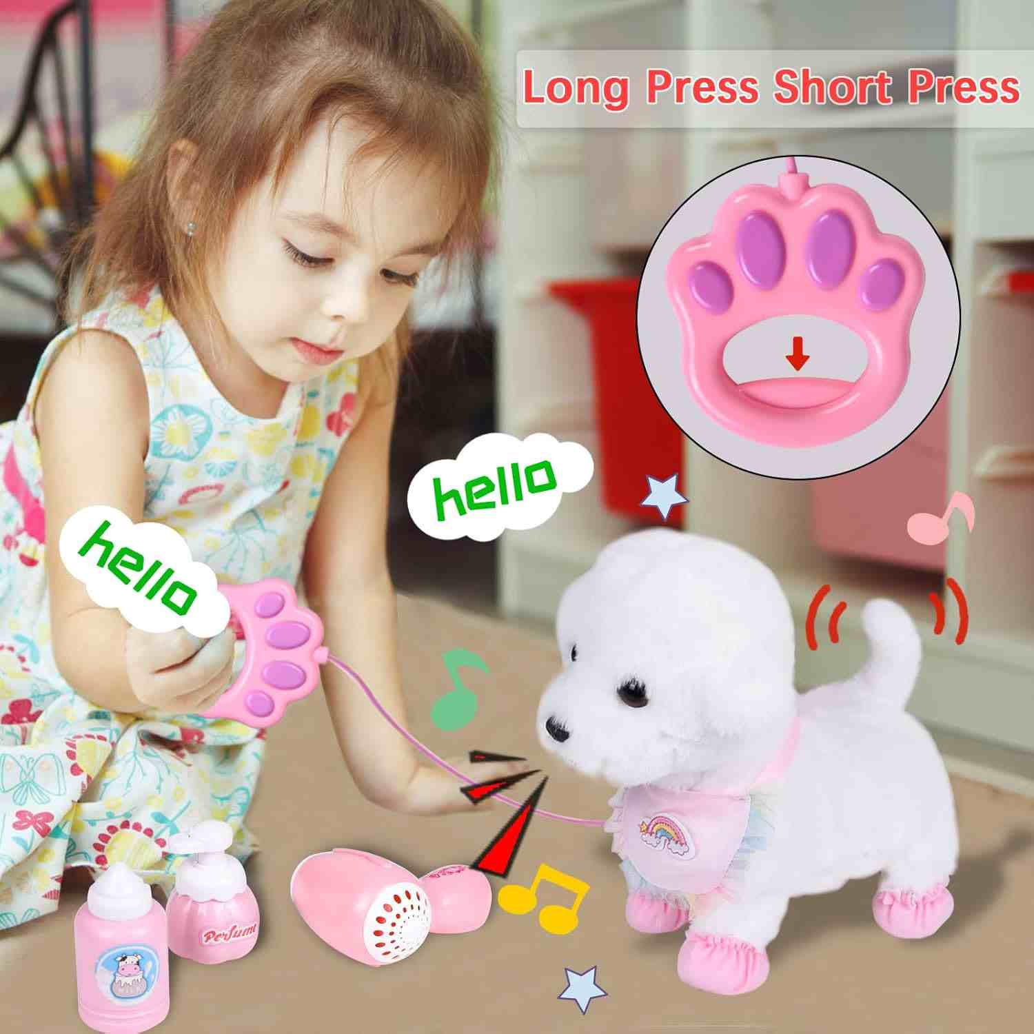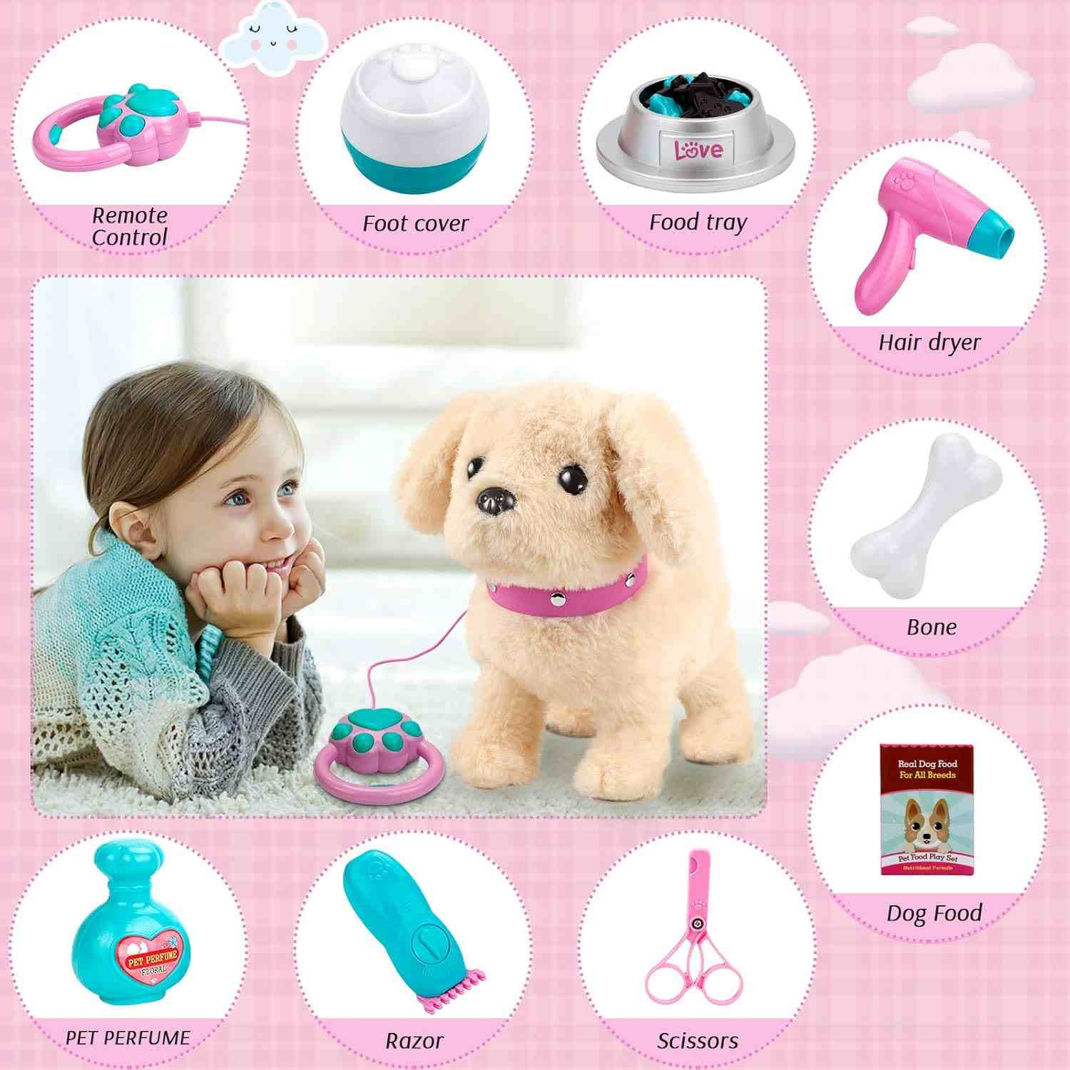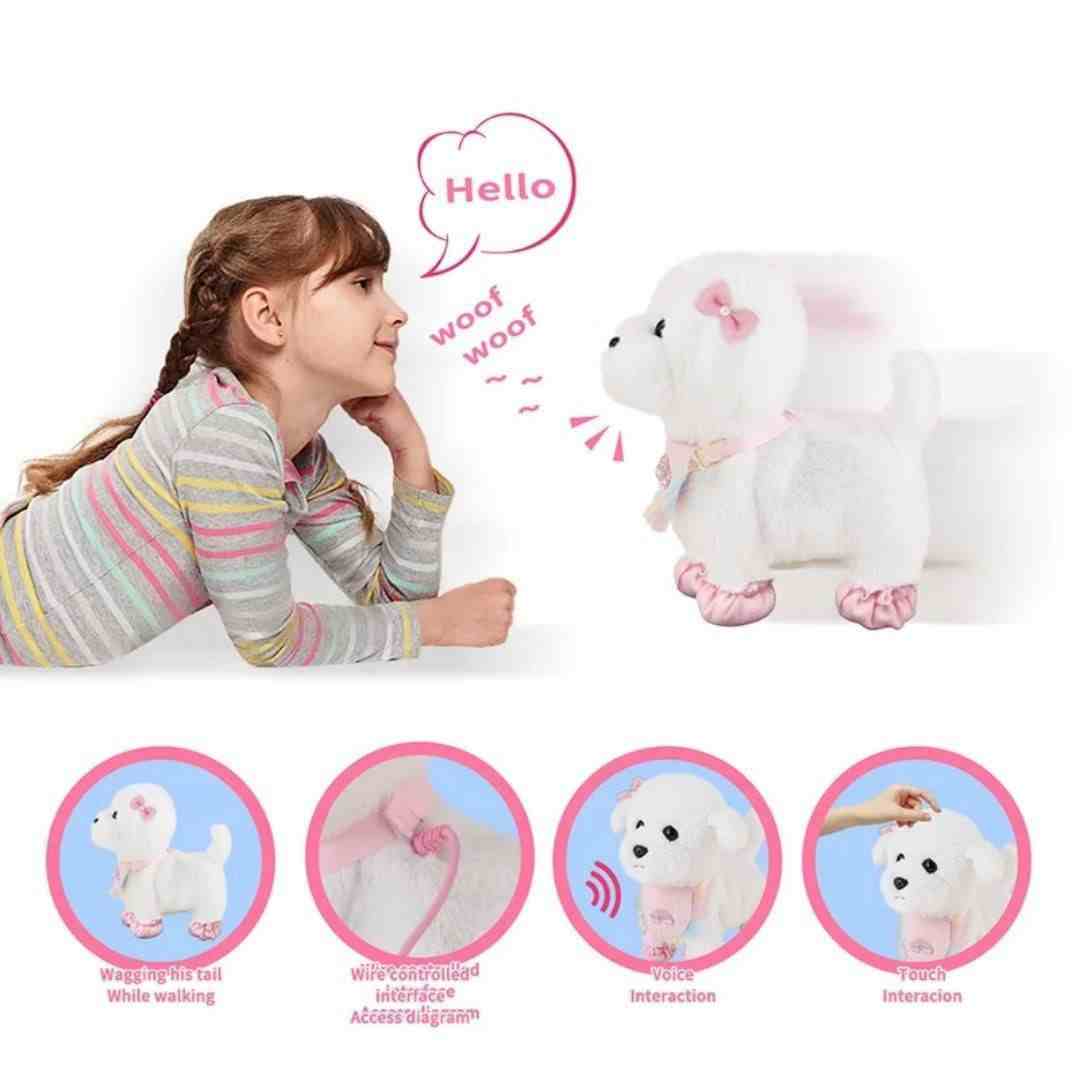 این یک مجموعه اسباببازی تعاملی برای سگهای همراه است. این سگ خانگی الکترونیکی 10 اینچی اصیل و بامزه از نژاد گلدن رتریور با قلاده، موهای نرمی دارد که لمس آن لذتبخش است. روی دسته قلاده، یک کلید وجود دارد. اگر کلید را کوتاه فشار دهید، گلدن رتریور واق واق میکند، دم خود را تکان میدهد و برای مدت کوتاهی راه میرود؛ اگر کلید را طولانی فشار دهید، سگ توله سگ آواز میخواند و بدون توقف راه میرود. علاوه بر این، این اسباببازی توله سگ میتواند حرفهای شما را تقلید کند، انگار که با شما گفتگویی صمیمانه دارد، درست مثل دوست خوبتان. این مجموعه اسباببازی خانه بازی با 9 لوازم جانبی آرایش حیوانات خانگی ارائه میشود که میتواند نیازهای نقشآفرینی آرایش حیوانات خانگی کودک را کاملاً برآورده کند. همچنین یک مجموعه اسباببازی آموزشی خوب است که کودکان میتوانند در حین مراقبت از دوستان توله سگ خود، همدلی را در خود پرورش دهند و مهارتهای اجتماعی خود را بهبود بخشند.