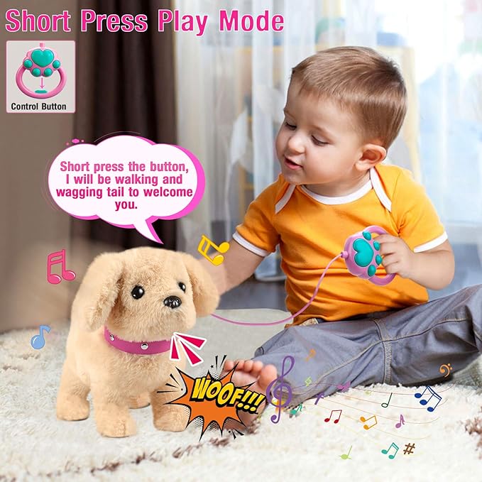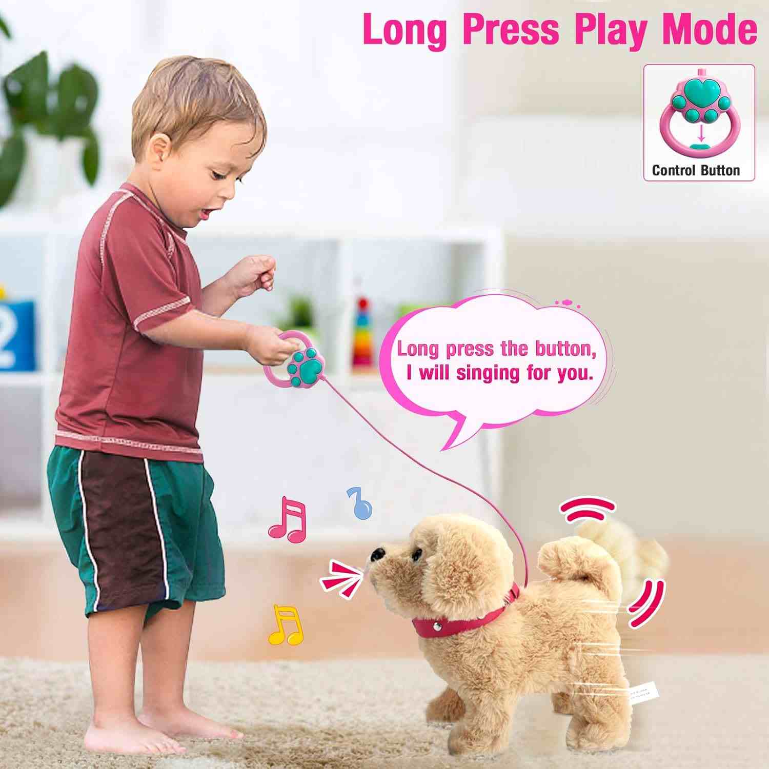 【عملکرد کشیدن نخ】 عملکرد کشیدن نخ درجه یک. با فشار کوتاه روی دسته روی سیم، سگ گلدن رتریور میتواند پارس کند، دم خود را تکان دهد و برای مدت کوتاهی راه برود. با فشار طولانی روی دسته روی سیم، توله سگ موسیقی پخش میکند و تمام مدت راه میرود، نرم و مخملی، دلپذیر برای لمس، فوقالعاده واقعگرایانه و زیبا.