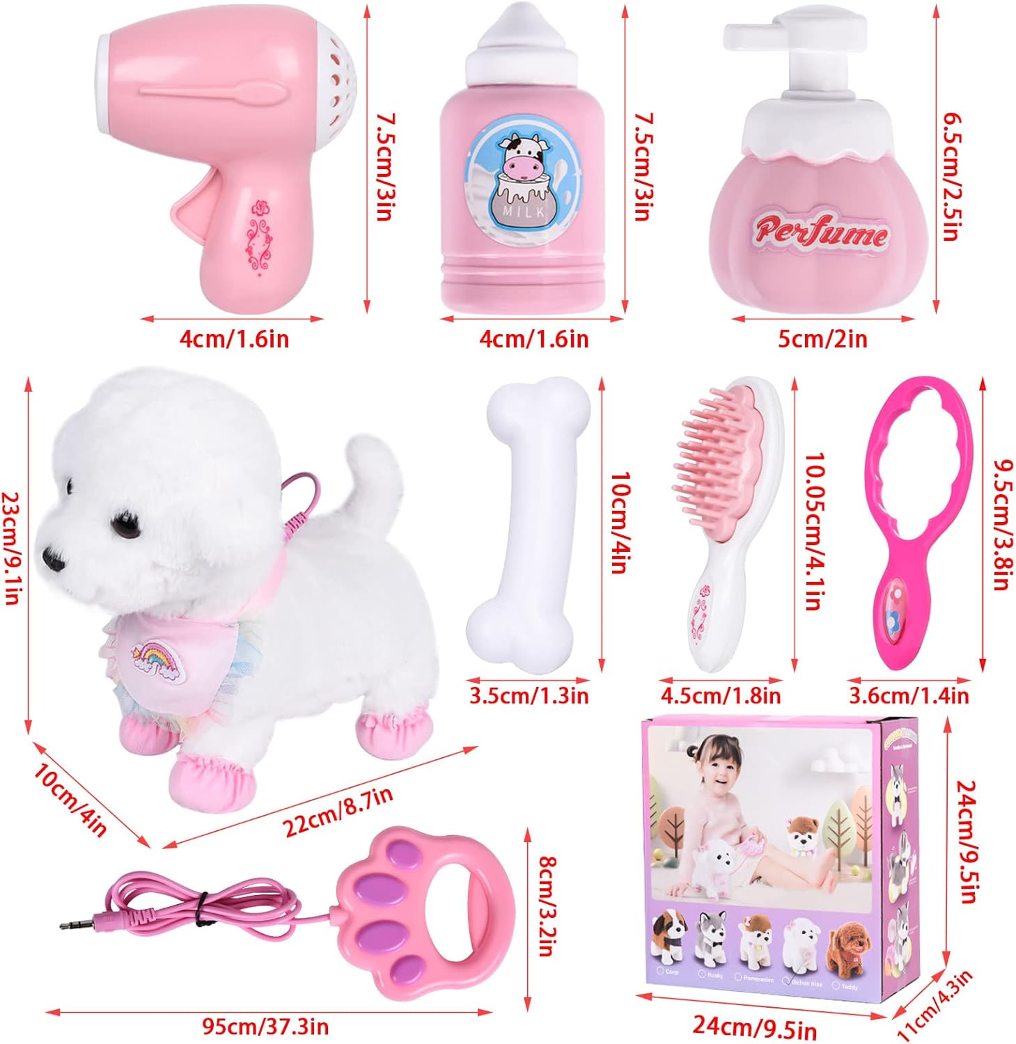 【۱۰ مجموعه لوازم جانبی مختلف】 به منظور افزایش لذت نقشآفرینی برای کودکان، ما با دقت این توله سگ راهرونده را به ۱۰ لوازم جانبی مجهز کردهایم: استخوان، سینی غذا، ظرف تنقلات، ماشین اصلاح مو، قیچی، سشوار، عطر، توپ اسباببازی، قلاده سگ بنددار و پیچگوشتی.